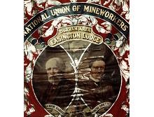 Detail of National Union of Mineworkers - Durham Area - Easington Miners Lodge banner - images of J Keir Hardie and Robert Smillie.