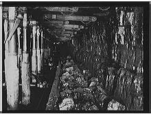 14th south Low Main showing Huwood slicer with Gullick props. Easington Colliery, 1954.