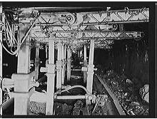 14th south Low Main. Slicer face showing P80 conveyor Note: Gullick props. Easington Colliery, 1954.
