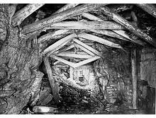 Hutton Seam - north return before reconstruction but after the 1951 disaster. Note: Herringbone props. Easington Colliery, 1954.
