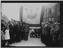 Easington Lane lodge banner, depicting Easington Lane War Memorial.